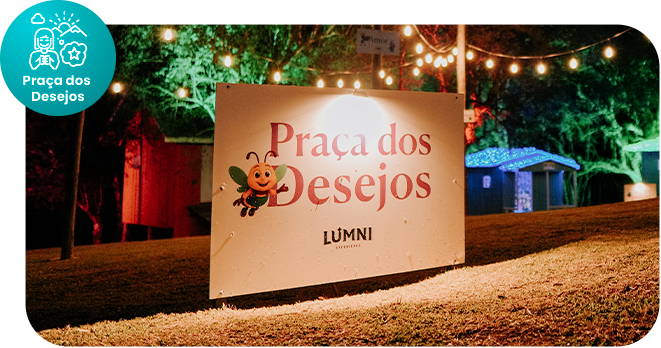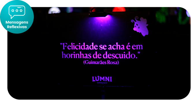 Veja suas palavras brilharem na noite em painéis iluminados em LED, transformando mensagens em luz e fazendo parte da experiência do parque.