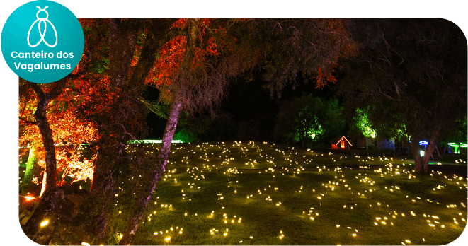 Se deslumbre com um campo de luzes que recria o brilho dos vagalumes na noite. Pontos luminosos giram sem cessar, criando um efeito vivo que prende o olhar.