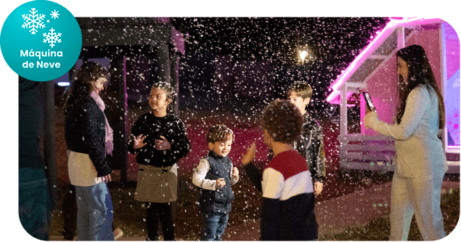 Em momentos especiais da noite, uma chuva de neve artificial e bolhas de sabão transforma o ambiente e cria um momento interativo pensado especialmente para as crianças.